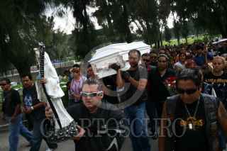 TLANEPANTLA, ESTADO DE MÉXICO., 01AGOSTO2008- Jonathan Legaria Vargas mejor conocido como el Comandante Padrino Endoque Pantera líder religioso de la santa muerte fué enterrrado en el panteón jardines del recuerdo después de la madrugada del este jueves fuera acribillado por un grupo de sicarios en el estado de México. FOTO: SÁSHENKA GUTIÉRREZ/CUARTOSCURO.COM