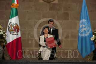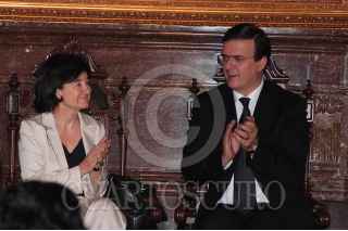 MÉXICO D.F., 01AGOSTO2008.-Marcelo Ebrad, jefe del gobierno capitalino nombro a Inés Alberdi, Directora Ejecutiva del Fondo de Desarrollo de las Naciones Unidas para la Mujer (UNIFEM) como huéspet distinguida de la ciudad y con quien realizó la firma de un convenio de colavoración. FOTO: GUILLERMO PEREA/CUARTOSCURO.COM