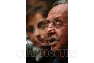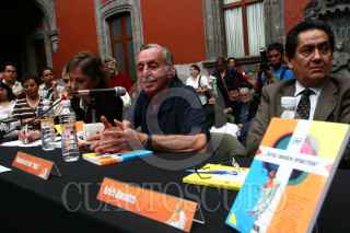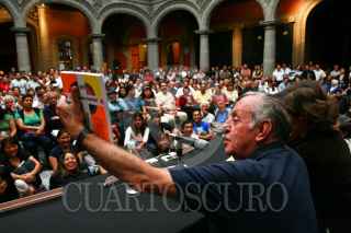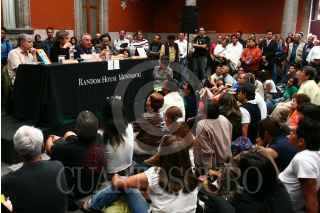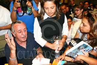 MEXICO, D.F., 05AGOSTO2008.- Decenas de personas pidieron un autógrafo al escritor y cartonista Eduardo del Río "Rius", quien presentó su libro "¿Sería Católico Jesucristo", ante un abarrotado patio del Museo de la Ciudad de México, FOTO: ISAAC ESQUIVEL/CUARTOSCURO.COM