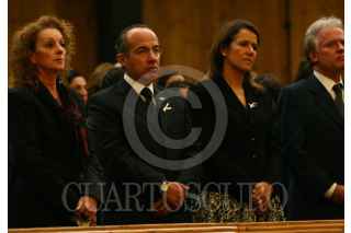 MÈXICO. D.F., 05AGOSTO2008.- El presidente de México, Felipe Calderón Hinojosa acompañado de su esposa, Margarita Zavala, acompañaron ésta noche a la familia de Fernando Martí Haik, en una misa que en su memoria se ofició en la Parroquia de la Santa Cruz del Pedregal FOTO:SAÚL LÓPEZ/CUARTOSCURO.COM