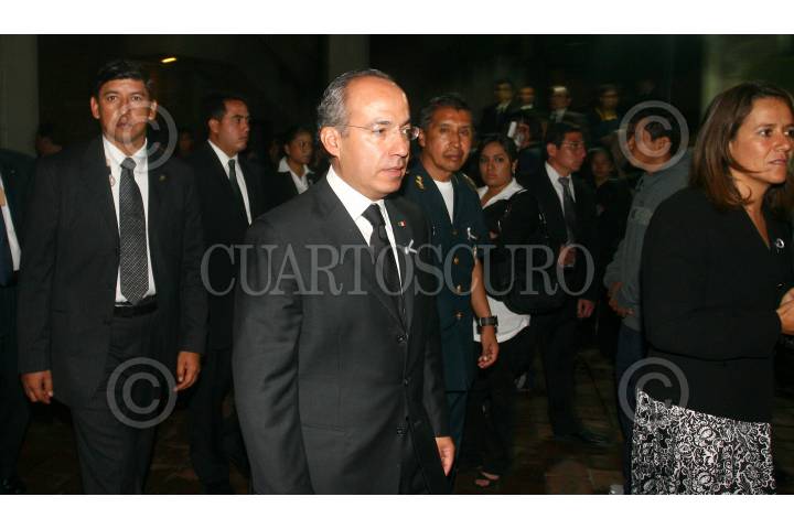 MÈXICO. D.F., 05AGOSTO2008.- El presidente de México, Felipe Calderón Hinojosa acompañado de su esposa, Margarita Zavala, acompañaron ésta noche a la familia de Fernando Martí Haik, en una misa que en su memoria se ofició en la Parroquia de la Santa Cruz del Pedregal FOTO:SAÚL LÓPEZ/CUARTOSCURO.COM