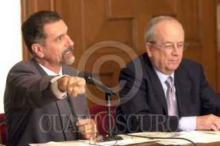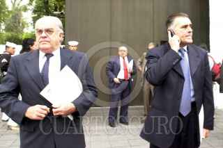 Carlos Abascal, secretario del Trabajo y Claudio X. González, presidente del Consejo Coordinador Empresarial ofrecierón conferencia de prensa al termino de la reunión de los sectores empresariales, obreros y sindicales. FOTO: Oswaldo Ramírez/CUARTOSCURO.COM