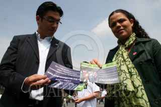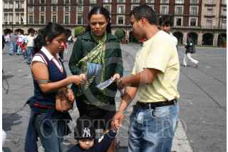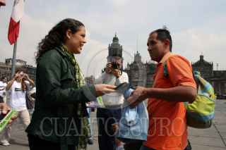 MÉXICO, D.F., 06AGOSTO2008.- Mariana Gomez del Campo presidenta del Partido Acción Nacional en el D.F. repartio volantes en la plancha del Zócalo capitalino los cuales invitan a los jóvenes a denunciar antros y bares que no cuenten con las medida de seguridad necesarias FOTO: RICARDO CASTELAN /CUARTOSCURO.COM