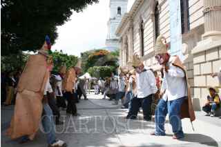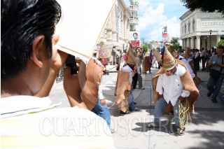 CHILPANCINGO, GUERRERO., 08AGOSTO2008.- En el marco del día Internacional de los Pueblos Indigenas del Mundo, se presentó en el zócalo de la ciudad la danza tradicional indigenas "Tecuanis" proveniente de Cuatepec Costales municipio de Teloloapan. FOTO: OSCAR ALVARADO/CUARTOSCURO.COM
