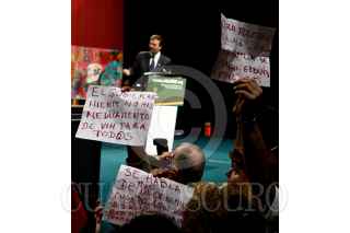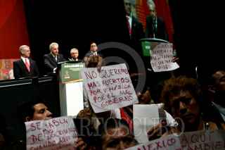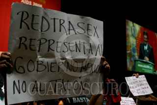 MÉXICO D.F., 08AGOSTO2008.- Trabajadoras sexuales mexicanas protestan con carteles durante la intervención del jefe de gobierno Marcelo Ebrard en la ceremonia de clausura dela XVII Conferencia Internacional sobre el SIDA que se realizo en el centro Banamex. FOTO: RODOLFO ANGULO/CUARTOSCURO.COM