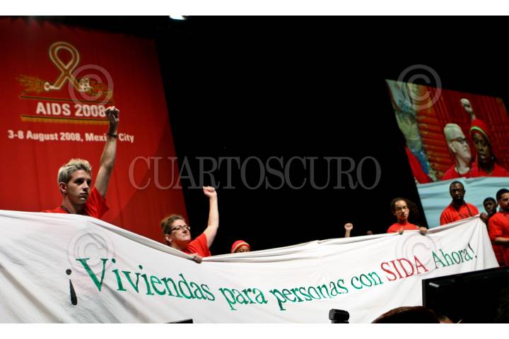 MÉXICO D.F., 08AGOSTO2008.- Trabajadoras sexuales mexicanas protestan con carteles durante la intervención del jefe de gobierno Marcelo Ebrard en la ceremonia de clausura dela XVII Conferencia Internacional sobre el SIDA que se realizo en el centro Banamex. FOTO: RODOLFO ANGULO/CUARTOSCURO.COM