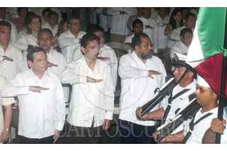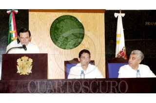 CAMPECHE, CAMPECHE, 08AGOSTO2008.-El Secretario de Gobernación, Juan Camilo Mouriño Terrazo, asistió esta mañana, con la representación personal del Presidente de la República, Felipe Calderón Hinojosa, al V Informe de Gobierno del mandatario estatal de Campeche, Jorge Carlos Hurtado Valdés. FOTO: CUARTOSCURO.COM
