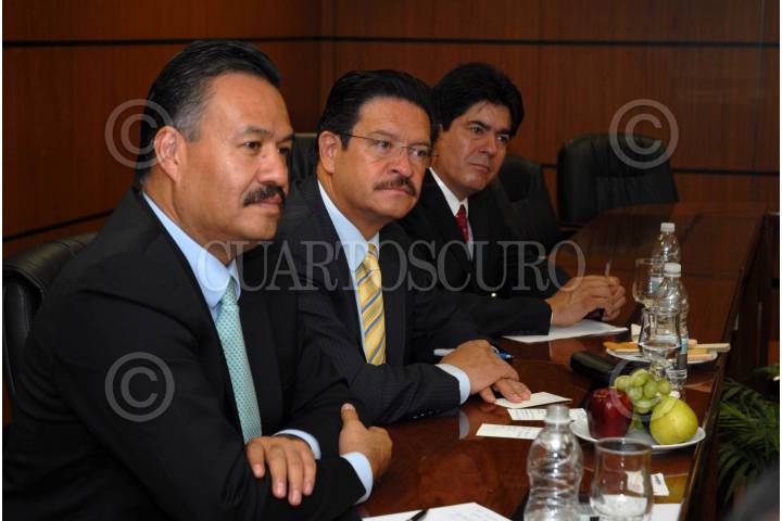MÉXICO, D.F., 12AGOSTO2008.- Los Senadores del PRD, Carlos Sotelo García, Carlos Navarrete Ruiz y Tomás Torres Mercado, se reunierón con directivos de medios de comunicación impresos para hablar sobre la necesidad de que el gobierno federal aplique un política equitativa para otorgar publicidad. FOTO: CUARTOSCURO.COM