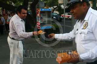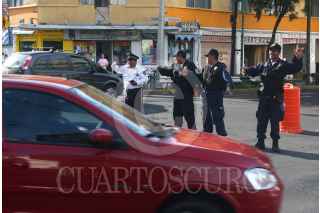 MÉXICO D.F., 12AGOSTO2008.- Apartir de las 18:00 horas del dìa de hoy se pusieron en marcha los ejes reversibles 5 y 6 Sur y Rio Churubusco que cambiarán de flujo hasta las 21:00 y 06:30 a 09:30 de la mañana respectivamente. En la imagen agentes de transito son colocados en diversos cruces para mejorar la vialidad y asi mismo reparten folletos donde sugieren vias alternas. FOTO: SAUL LOPEZ/CUARTOSCURO.COM