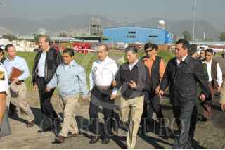 ECATEPEC, ESTADO. DE MÉXICO., 13AGOSTO2008.- El presidente, Felipe Calderón, acudió a este municipio a poner en marcha las obras del Emisor Oriente del drenaje profundo del Valle de México.En la imagen es acompañado por, José Ángel Ávila, secretario de Gobierno del Distrito Federal, José Luis Lueje Tamargo, titular de CONAGUA, José Luis Gutiérrez Cureño,presidente municipal, Enrique Peña Nieto, Gobernador del Estado México y Miguel Ángel Osorio Chong, Gobernador de Hidalgo. FOTO: CUARTOSCUO.COM