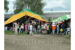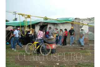 TEXCOCO, EDO. DE MÉX. 13AGOSTO2008.- Miembros de Antorcha Popular, lidereados por su líder estatal Jesús Tolentino Román Borjorquez, y Gloria Brito Nájera, dirigente de la región Atenco- Texcoco, se mantienen en espera que el gobierno de extracción perredista de esta localidad les de la factibilidad de servicios dentro del predio del Rancho Santa Martha, de uso agrícola para iniciar con la construcción de viviendas. FOTO: MARIO NULO/CUARTOSCURO.COM