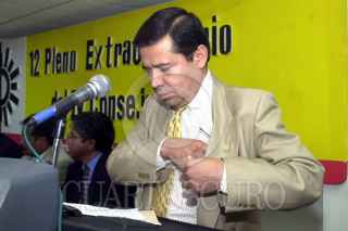 Victor Hugo Círigo busca entre sus bolsas lo que sería su primer discurso como Presidente del PRD en el Distrito Federal. FOTO: Pedro Mera/CUARTOSCURO.COM