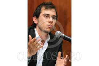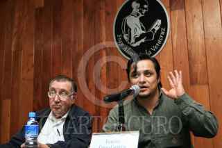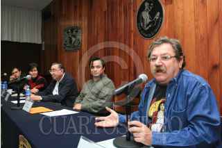 MÉXICO, D.F., 19AGOSTO2008.- El escritor Paco Ignacio Taibo II asistió a la conferencia de prensa que se realizó en la Facultad de Ciencias Políticas y Sociales con motivo de la próxima liberación de Héctor y Antonio Cerezo Contreras, quienes cumplen una condena de siete años bajo acusaciones de delincuencia organizada y posesión de armas y cartuchos de uso exclusivo del Ejército. FOTO: ISAAC ESQUIVEL/CUARTOSCURO.COM