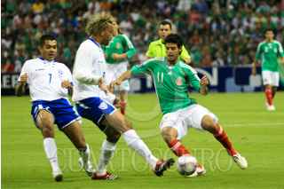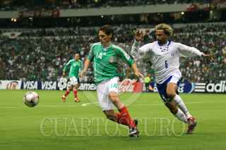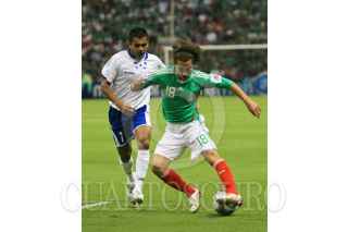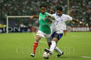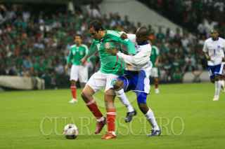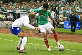 MÉXICO, D.F., 20AGOSTO2008.- El seleccionado mexicano Carlos Vela intenta pelea el balón con la defensa hondureña, en el partido que seleccion mexicana de futbol venció por 2-1 a su similar de Honduras en el primer partido de la eliminatoria rumbo al mundial de Sudáfrica, disputado en el estadio Azteca. FOTO: ISAAC ESQUIVEL/CUARTOSCURO.COM
