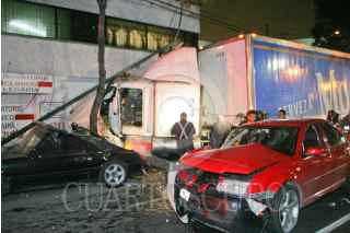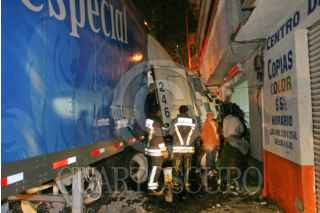 MÈXICO, D.F., 21AGOSTO2008.- En la Calzada Legaría, colonia Ampliaciòn Torre Blanca, un Trailer con 40 Toneladas de Cerveza se estrellò contra la fachada de un vivienda con locales comerciales despues que un automovil Jetta color rojo se le cerrara ya que el conductor iba en estado de ebriedad. FOTO: LUZ ACEVEDO/CUARTOSCURO.COM