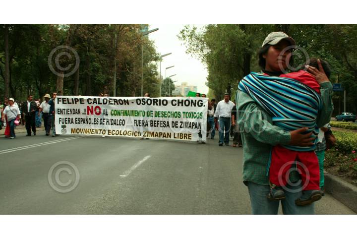 MÉXICO, D.F., 21AGOSTO2008.-Habitantes de Zimapán del estado Hidalgo, marcharon hacia Los Pinos para manifestarse en contra del basurero tóxico que la empresa española Befesa está próxima a inaugurar en la zona. FOTO: SARA ESCOBAR/CUARTOSCURO.COM