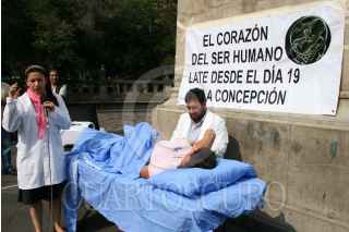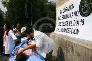MÉXICO, D.F., 26AGOSTO2008.- Integrantes de Pro-Vida encabezados por Jorge Serrano Limón hizo sonar el corazón de un un bebe de 19 días de gestación esto como protesta a la y de aborto que se discute en la Suprema Corte de la Justicia de la Nación, eso frente el monumento a Beethoven que se encuentra el la Alameda Central. FOTO: RICARDO CASTELAN/CUARTOSCURO.COM