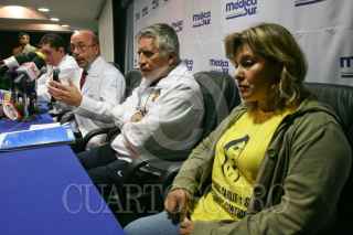 MÉXICO D.F., 26AGOSTO2008.- Yolanda Romero, madre del jugador americanista Carlos Sanchéz, quien sufrió hace unas semanas un infarto cerebral durante el entrenamiento en el nido de Coapa, agradeció el apoyo de la institución y de los médicos que atendido a su hijo, durante una conferencia de prensa en el hospital en donde es atendido. FOTO: MOISÉS PABLO/ CUARTOSCURO.COM