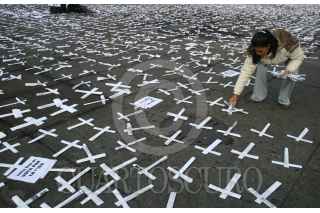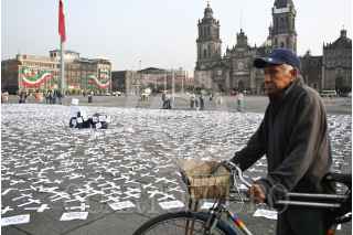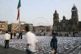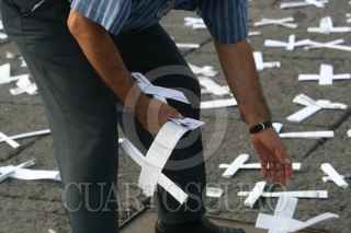 MÉXICO D.F., 27AGOSTO2008.- Organizaciones civiles, encabezadas por la diputada M aría de la Paz Quiñónez del PAN, colocaron 12 mil 600 cruces de papel frente al edificio del GDF, en protesta contra la despenalización del aborto. FOTO: SÁSHENKA GUTIÉRREZ/CUARTOSCURO.COM