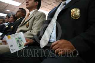 MÉXICO D.F., 27AGOSTO2008.- Miguel Ángel Mancera, procurador general de justicia del D.F., Hizo entrega de de cédulas profesionales de la carrera técnico superior universitario en investigación publica, a policías judiciales egresados del Instituto de Formación Profesional. FOTO: RICARDO CASTELAN/CUARTOSCURO.COM