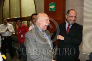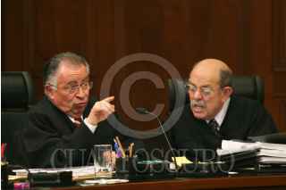 MÉXICO D.F., 27AGOSTO2008.- Los ministro, Guillermo Ortiz Mayagoitia y José Ramón Cossío, al tomarse un descanso de la sesión en la cual se discutió la controversia constitucional sobre la despenalización del aborto antes de la doceava semana de gestación, que se realizó en la Suprema Corte de Justicia de la Nación. FOTO: MOISÉS PABLO/CUARTOSCURO.COM