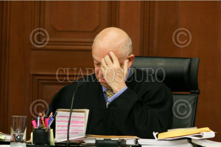 MÉXICO D.F., 27AGOSTO2008.- Los ministro, Guillermo Ortiz Mayagoitia y José Ramón Cossío, al tomarse un descanso de la sesión en la cual se discutió la controversia constitucional sobre la despenalización del aborto antes de la doceava semana de gestación, que se realizó en la Suprema Corte de Justicia de la Nación. FOTO: MOISÉS PABLO/CUARTOSCURO.COM
