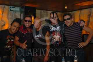 MÉXICO D.F., 27AGOSTO2008.- Esta tarde se llevó acabo una conferencia de prensa con motivo de la presentación de mañana del grupo norteamericano "Misfits", en el Bull-Dog Café. En la imagen el baterista Robo y el bajista y vocalista Jerry Only. FOTO: CUARTOSCURO.COM