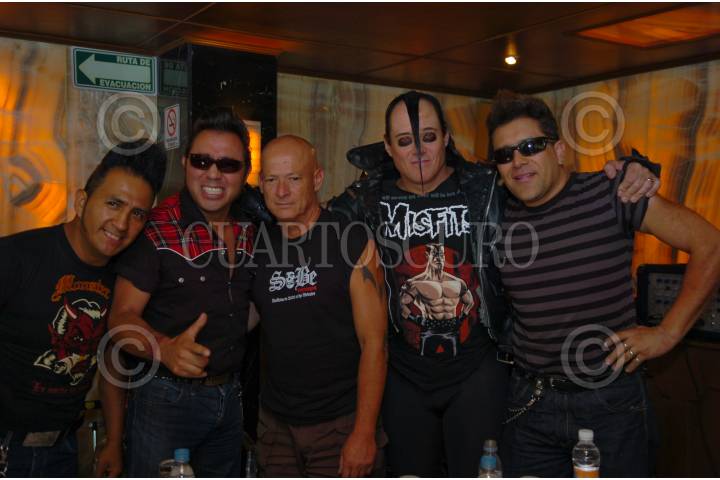 MÉXICO D.F., 27AGOSTO2008.- Esta tarde se llevó acabo una conferencia de prensa con motivo de la presentación de mañana del grupo norteamericano "Misfits", en el Bull-Dog Café. En la imagen el baterista Robo y el bajista y vocalista Jerry Only. FOTO: CUARTOSCURO.COM