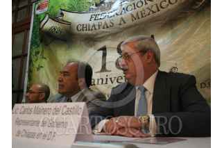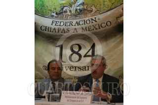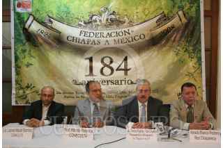 MÉXICO D.F., 28AGOSTO2008.- El Profesor de Conaculta, Alfredo Palacios junto con el representante del Gobierno de Chiapas en el D.F., Carlos Mainero del Castillo, durante la conferencia que se celebró para dar detalles del 184 aniversario de la Federacion de Chiapas y el festival que se realizará en el Centro Cultural Ollin Yoliztli en el D.F. FOTO: ENRIQUE ORDÓÑEZ/CUARTOSCURO.COM