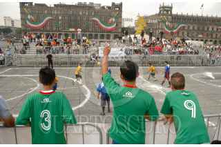 MÉXICO D.F., 28AGOSTO2008.- En la plancha del Zócalo capitalino se realiza el torneo de fútbol de niños y Jóvenes en Situación de Calle del DF, Veracruz, Michoacán, Morelos y Estado de México para seleccionar a los representantes de México en la Copa Mundial Street Soccer Australia 2008. FOTO: RODOLFO ANGULO/CUARTOSCURO.COM