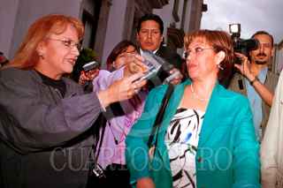 La presidenta del Partido de la Revolución Democrática Rosario Robles Berlanga se reunio con el secretario de Gobernación Santiago Creel en el antiguo Palacio de Covian. FOTO: Suana Navarrete/CUARTOSCURO.COM