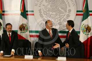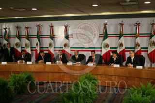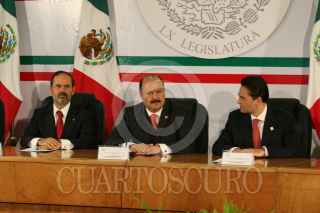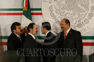 MÉXICO D.F., 01SEPTIEMBRE2008.-Juan Camilo Mouriño, titular de la Secretaria de Gobernación, acudió esta mañana a realizar la entrega del 2o. Informe de Gobierno ante la Cámara de Diputados. Por primera vez no acude el titular del ejecutivo a la entrega de dicho informe. En la imagen,el senador Cleomino Renan, el diputado Cesar Duarte, el senador, Gustavo Madero y Juan Camilo Muriño titular de Gobernación. FOTO: GUILLERMO PEREA/CUARTOSCURO.COM