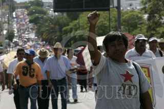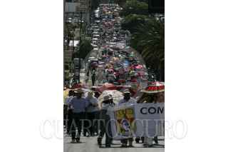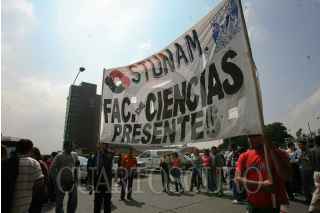 MÉXICO, D.F., 01SEPTIEMBRE2008.- Un mitin, realizado por los trabajadores del STUNAM, se realizó esta mañana en la rectoria de la UNAM, para luego dirigirse a las instalaciones de la Comisión Nacional del Agua ubicadas en Insurgentes y avenida Universidad. FOTO: IVAN MENDEZ/CUARTOSCURO.COM