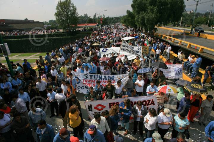 MÉXICO, D.F., 01SEPTIEMBRE2008.- Un mitin, realizado por los trabajadores del STUNAM, se realizó esta mañana en la rectoria de la UNAM, para luego dirigirse a las instalaciones de la Comisión Nacional del Agua ubicadas en Insurgentes y avenida Universidad. FOTO: IVAN MENDEZ/CUARTOSCURO.COM