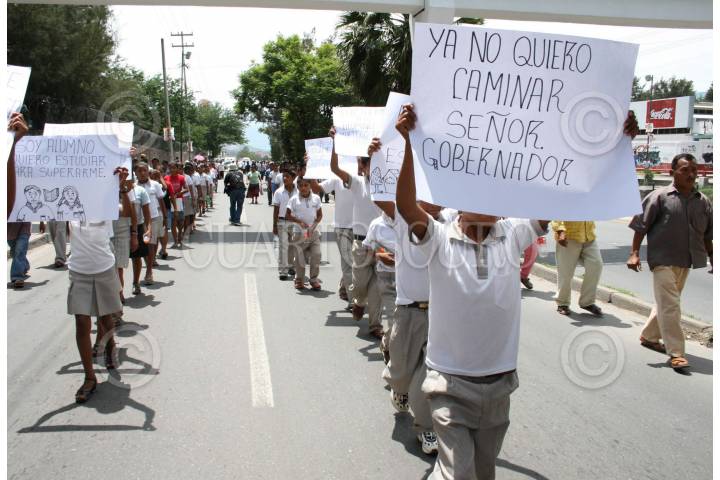 CHILPANCINGO, GUERRERO., 01SEPTIEMBRE2008.- Habitantes del municipio de San Luis Acatlan acompañados de alumnos de secundaria, durante la marcha que realizaron por la lateral de la Autopista del Sol, para exigir al gobernador del estado Zeferino Torreblanca Galindo y al titular de educacion Jose Luis Gonzalez de la Vega Otero la creacion de Telesecundarias en 7 comunidades de dicho municipio entre otras demandas. FOTO: OSCAR ALVARADO/CUARTOSCURO.COM