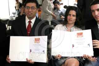 México D.F., a 2 de Septiembre de 2008.- Arturo Rosas y Fabiola Fernández-Guerra ganadores de los premios del certamen "Construyendo ciudadanía en los medios Web", que esta mañana premio Emilio Alvarez Icaza, en la CDH-DF. FOTO: VICTORIA VALTIERRA/CUARTOSCURO.COM
