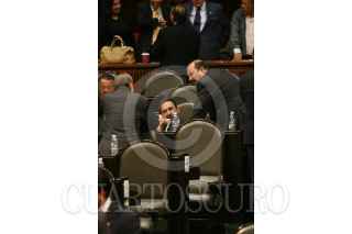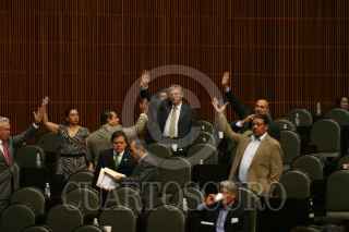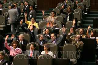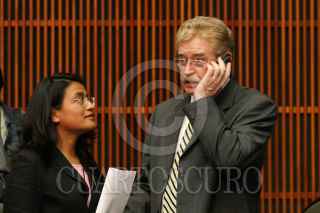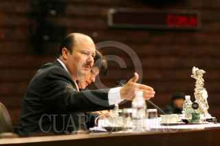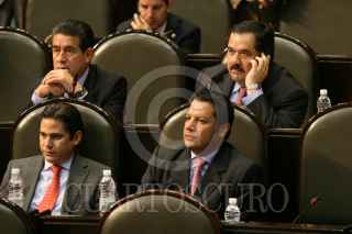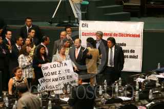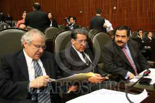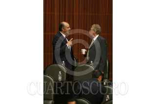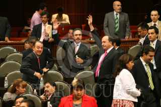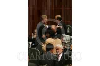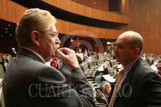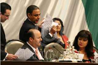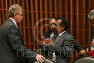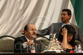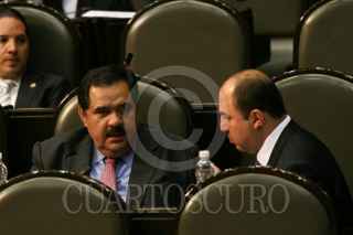 MÉXICO D.F., 02SEPTIEMBRE2008.-Se realizó la segunda sesión ordinaria del tercer periodo de sesiones en la Cámara de Diputados de la LX legislatura. En la imagen el diputado Cesar Duarte presidente de la mesa directiva saluda al dputado del PRD, Javier González Garza. FOTO: GUILLERMO PEREA/CUARTOSCURO.COM