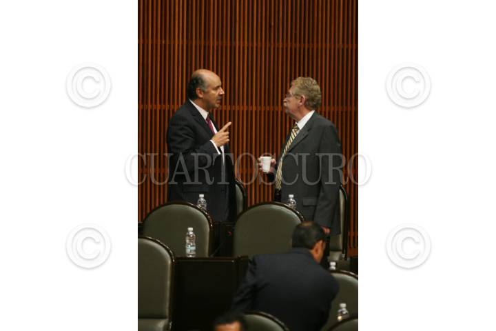 MÉXICO D.F., 02SEPTIEMBRE2008.-Se realizó la segunda sesión ordinaria del tercer periodo de sesiones en la Cámara de Diputados de la LX legislatura. En la imagen el diputado Cesar Duarte presidente de la mesa directiva saluda al dputado del PRD, Javier González Garza. FOTO: GUILLERMO PEREA/CUARTOSCURO.COM