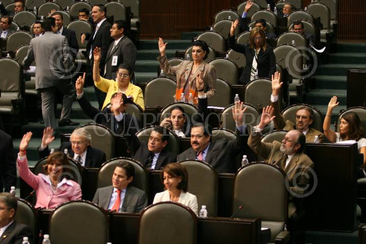 MÉXICO D.F., 02SEPTIEMBRE2008.-Se realizó la segunda sesión ordinaria del tercer periodo de sesiones en la Cámara de Diputados de la LX legislatura. En la imagen el diputado Cesar Duarte presidente de la mesa directiva saluda al dputado del PRD, Javier González Garza. FOTO: GUILLERMO PEREA/CUARTOSCURO.COM