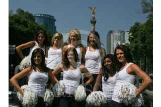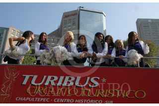 MÉXICO, D.F., 03SEPTIEMBRE2008.- Esta mañana ocho porristas de los Vikingos de Minnesota realizaron un recorrido abordo de un Turibus que partio del Auditorio Nacional al Zocalo Capitalino. FOTO: ENRIQUE ORDÓÑEZ/CUARTOSCURO.COM