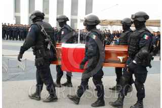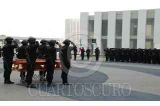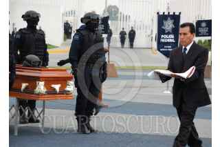 MÉXICO, D.F., 03SEPTIEMBRE2008.- La Secretaría de Seguridad Pública federal, el día de hoy llevó a cabo una ceremonia luctuosa en honor del Policía Federal, Pedro Solana Cobaxin, quien perdiera la vida ayer luego de un enfrentamiento contra presuntos secuestradores en el estado de México, en cuya acción se logró el rescate de dos víctimas de secuestro. El homenaje póstumo de cuerpo presente estuvo presidido por el Subsecretario de Estrategia e Inteligencia Policial, Facundo Rosas Rosas, quien externó un reconocimiento a la labor de tan valioso elemento, y que hasta el día de su desafortunado fallecimiento, cumplió con dedicación y compromiso su deber con la sociedad. FOTO: SSPF/CUARTOSCURO.COM