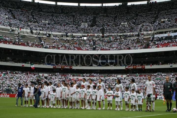 MÉXICO, D.F., 06SEPTIEMBRE2008.- Edecanes animaron el medio tiempo del partido entre las selecciones de México y Jamaica, disputado en el estadio Azteca y cuyo marcador favoreció a los locales por 3-0. FOTO: ISAAC ESQUIVEL/CUARTOSCURO.COM