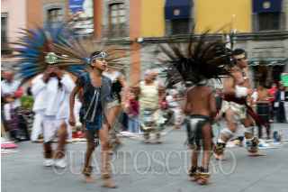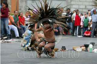 MÉXICO, D.F., 07SEPTIEMBRE2008.- Danzantes entretienen a turistas y visitantes en el Centro Histórico de la ciudad de México. FOTO: ISAAC ESQUIVEL/CUARTOSCURO.COM