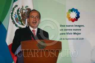 MÉXCIO D.F., 08SEPTIEMBRE008.- Felipe Calderon Hinojosa Presidente de México, durante el lanzamiento de la nueva imágen del correo Mexicano realizada en palacio postal. FOTO: SÁSHENKA GUTIÉRREZ/CUARTOSCURO.COM