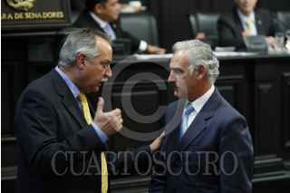 MÉXICO D.F., 09SEPTIEMBRE2008.- Los senadores Ernesto Saro, PRI y Alejandro Zapata Perogordo, PAN, durante la sesión en la Cámara de Senadores. FOTO: IGNACIO GONZÁLEZ/CUARTOSCURO.COM
