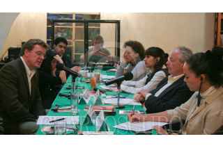 MÉXICO D.F., 09SEPTIEMBRE2008.- Andrea Wertz, Director de INFORADIO Berlin, durante la conferencia de prensa, INFORADIO Berlin y la radiodifusión publica en Alemania: retos, problemas y perspectivas, donde participó, Ana Cecilia Terrazas, periodista que actualmente trabaja en El Instituto Mexicano de la Radio, (IMER). FOTO: ENRIQUE ORDOÑEZ/CUARTOSCURO.COM