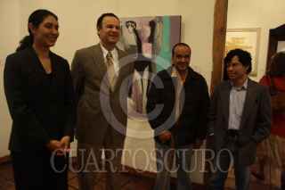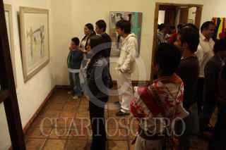 ZACATECAS, ZACATECAS, 13SEPTIEMBRE2008.- El día de ayer se efectuo la inauguración de la exposición "Dibujos y Pinturas" de Enrique Barajas Pro, que fue acompañado por compañeros, amigos y público en general. La inauguración fue precedida por Juan Martin Ocampo, Director de Galerias Arroyo de la Plata, el artista plastico Emilio Carrasco y el propio autor Enrique Barajas Pro. La exposición cuenta con 25 obras abstractas del artísta desarrolladas desde el 2005 hasta este año, y tendra un mes de permanecia en dicha galeria. FOTO: COSME RADA/CUARTOSCURO.COM