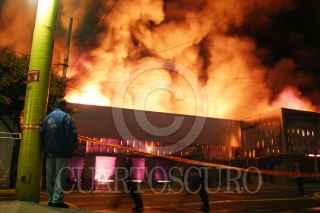 MÉXICO, D.F., 15SEPTIEMBRE2008.- La tienda comercial "Home Depot" de Cucurpe y avenida del Taller en la colonia 24 de Abril, ardio en su totalidad esta madrugada por una explosión en el área de la bodega de madera. FOTO: LUZ ACEVEDO/CUARTOSCURO.COM
