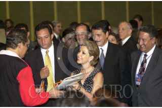 Martha Sahagún de Fox, firma autógrafos al final de su intervención en el Seminario Internacional de la Radio Pública en el IMER . FOTO: Oswaldo Ramírez/CUARTOSCURO.COM