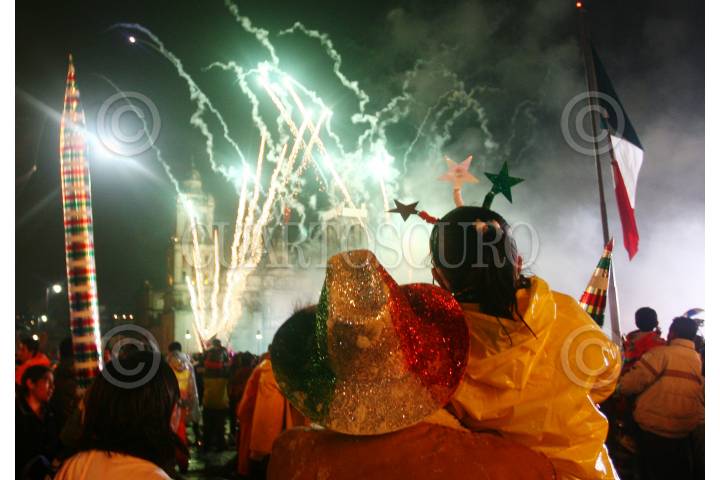 MÉXICO D.F.,15SEPTIEMBRE008.- Miles de mexicanos, se dieron cita en la plancha del zócalo capitalino para dar el grito de independencia ceremonia encabezadapor el Presidente de México Felipe Calderon en donde ondeo la bandera nacional y tocó la campana de Dolores acompañado por su familia ,desde el balcón central de Palacio Nacional, al conmemorar el 198 aniversario del inicio de la Independencia. FOTO: SÁSHENKA GUTIÉRREZ/CUARTOSCURO.COM